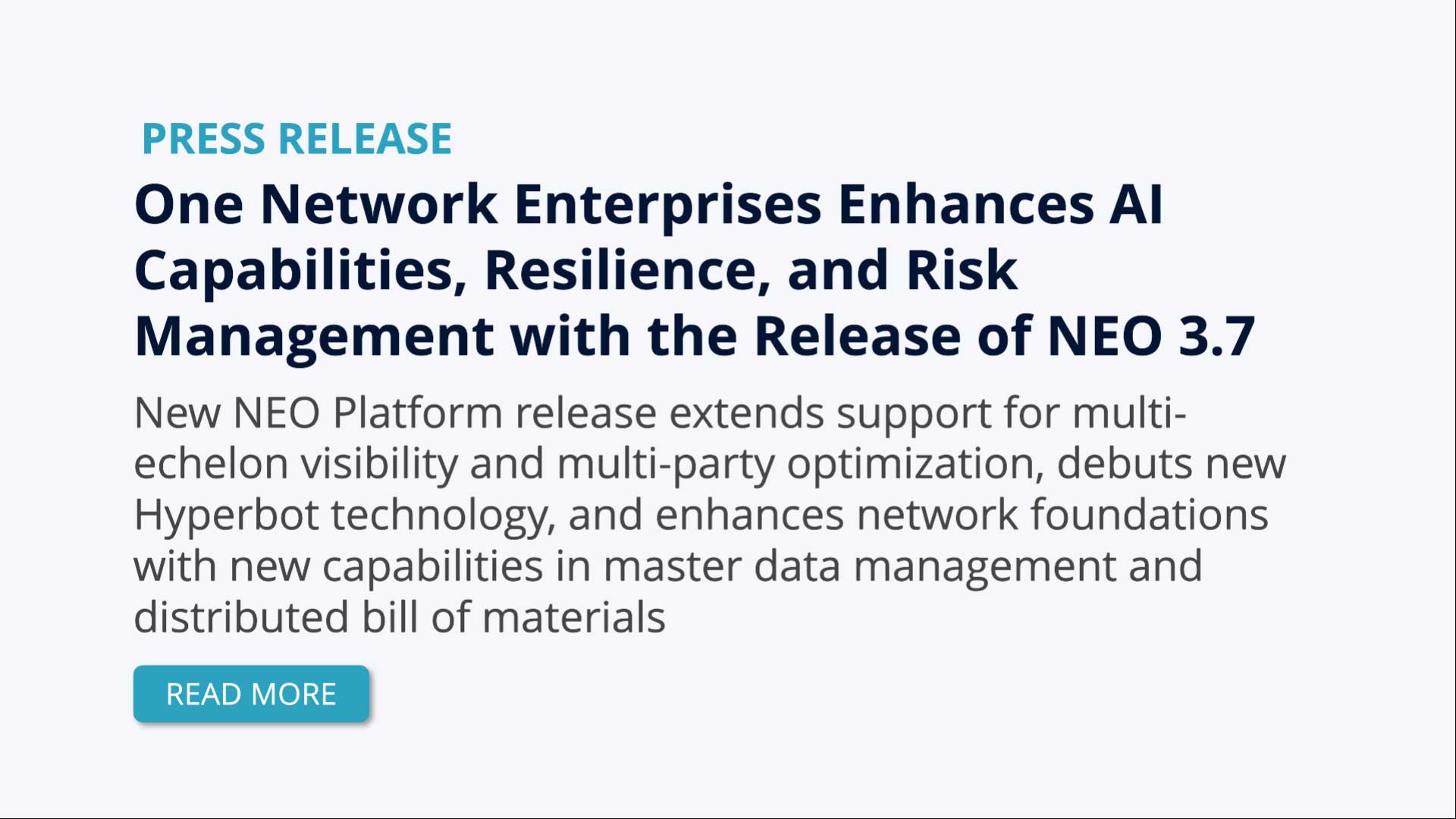 New NEO Platform release extends support for multi-echelon visibility and multi-party optimization, debuts new Hyperbot technology, and enhances network foundations with new capabilities in master data management and distributed bill of materials