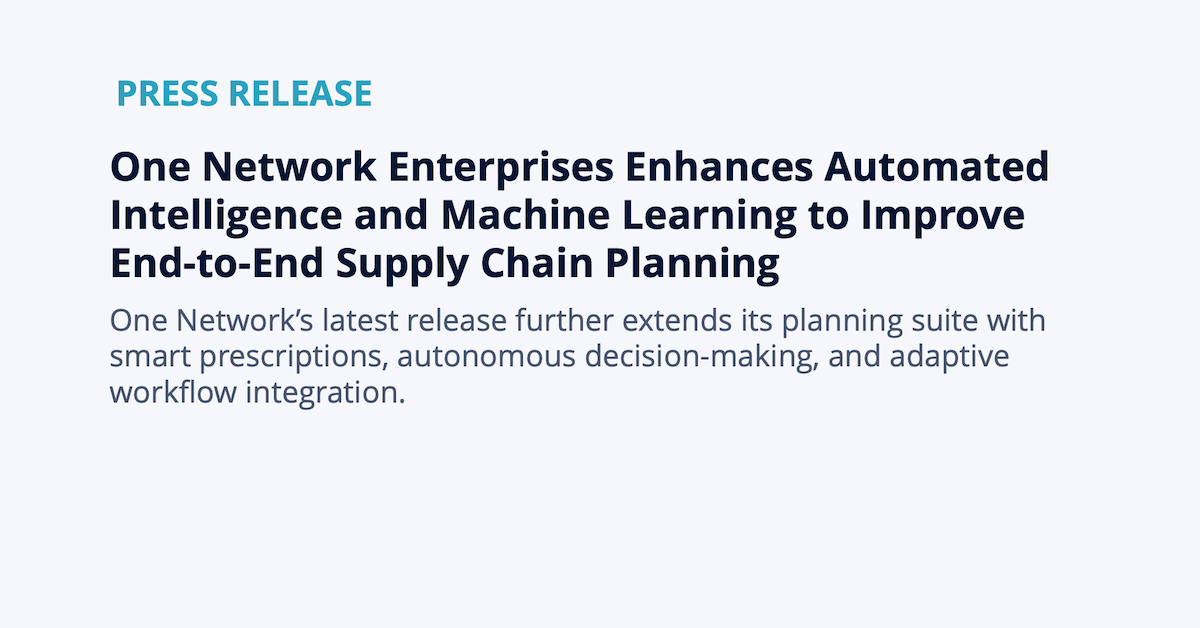 One Network’s latest release further extends its planning suite with smart prescriptions, autonomous decision-making, and adaptive workflow integration