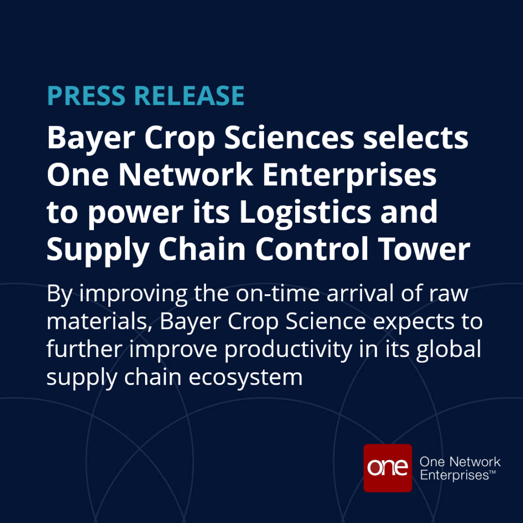 Dallas, TX – February 20, 2024 – One Network Enterprises (ONE), the leading global provider of intelligent control towers and the Digital Supply Chain Network™, is pleased to announce that Bayer Crop Sciences, a division of Bayer Corporation, has selected ONE to provide their Supply Chain Control Tower. Bayer will join the Digital Supply Chain Network™ to take advantage of a large and growing ecosystem, bringing efficiency, reliability, agility, and predictability to their global supply chain operations.
